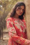 Red Chanderi, Cotton Lace, Embroidery, Tassels Round Orange Maxi Dress And Scarf
