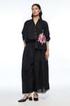 Payal Pratap Black Handloom Cotton Embroidery Collared Floribunda Oversized Shirt
