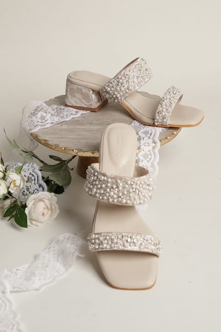 Buy_PHENOMINAAL_Off White Embellishments Strap Block Heels _Online_at_Aza_Fashions