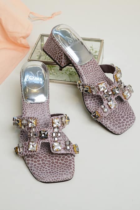 Buy_PHENOMINAAL_Gray Embroidered Block Heels _at_Aza_Fashions