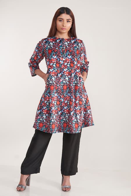 Black Velour, Crepe Embroidery Round Neck Floral Print Kurta And Pant Set