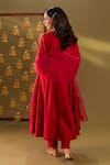 Red Chanderi, Organza Tassels V-neck Angrakha Set With Dupatta