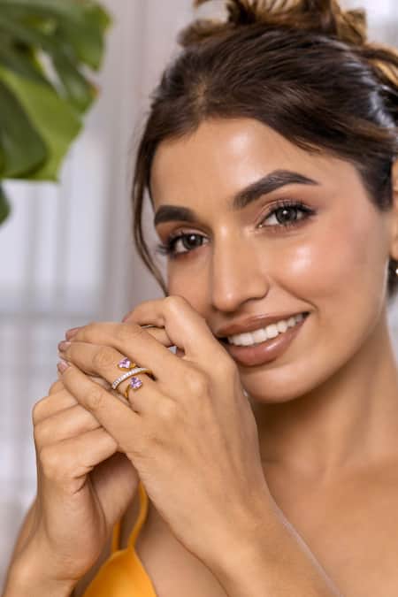 Gold Plated Crystals, Stones Cross-over Embellished Ring