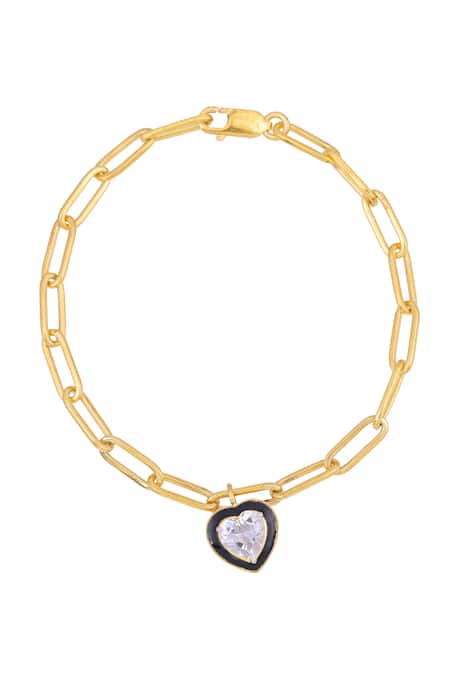 Gold Plated Crystals Heart Charm Chain Link Bracelet