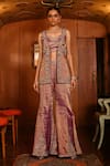 Purple Tissue Embroidery, Sequins, Beads Open Neck, Designer Aarohi Sharara Set