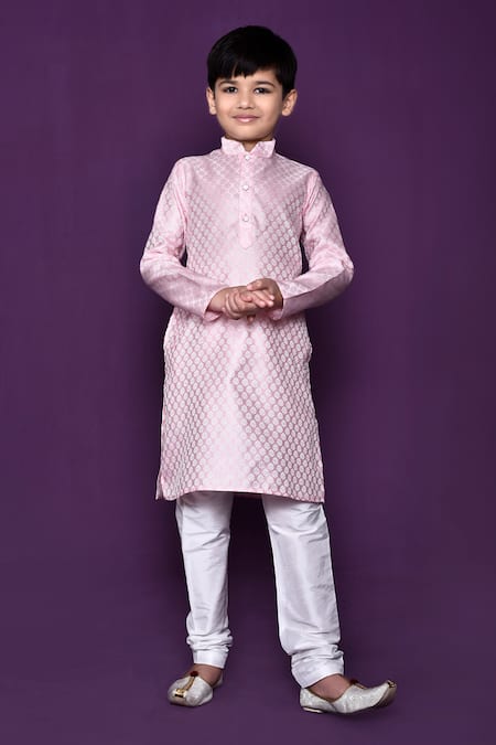 Pink Brocade, Chiffon, Silk Embroidery Floral Woven Pastel Kurta Set