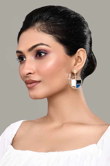 Blue Zari Kundan Jadau Embellished Dangler Earrings