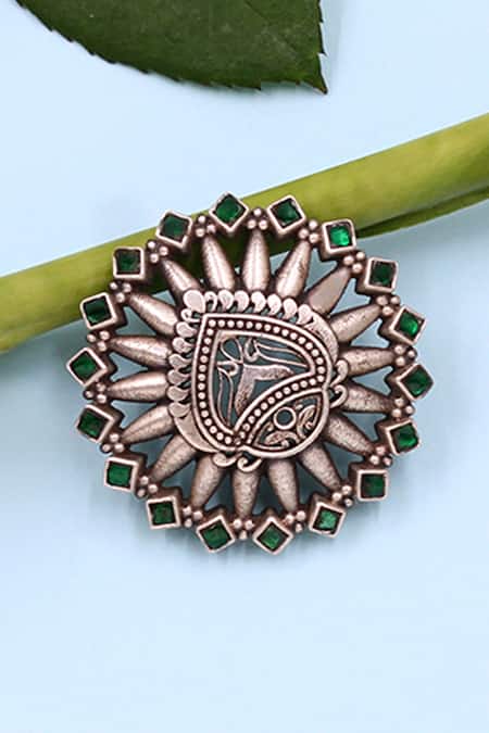 Green Stones Kundan Embellished Silver Ring