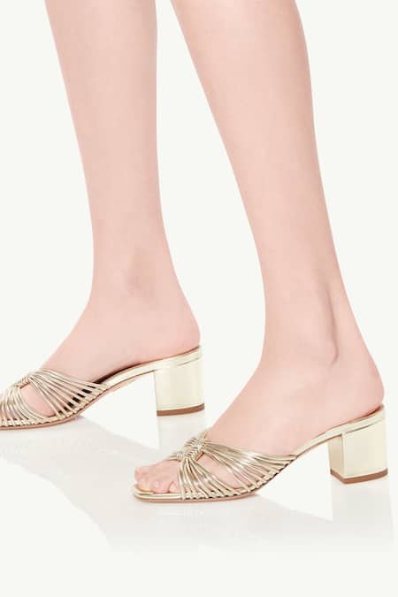 Gold Rhinestones Jocelyn Cord Straps Block Heels