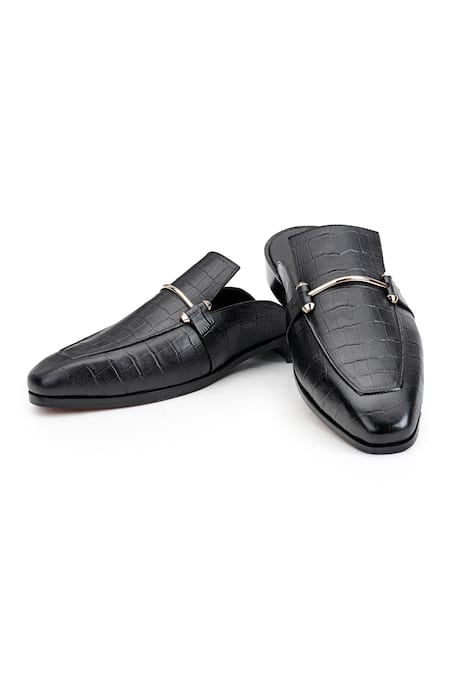Black Enzo Croco Leather Mules