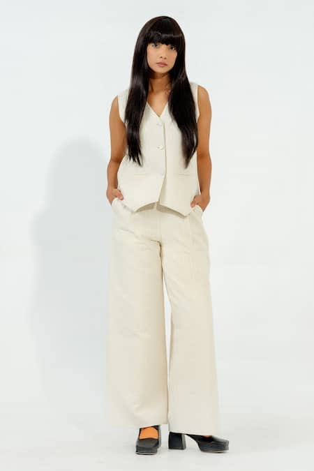 Gray Cotton Matty Plain Grey Quilted Flared Pant
