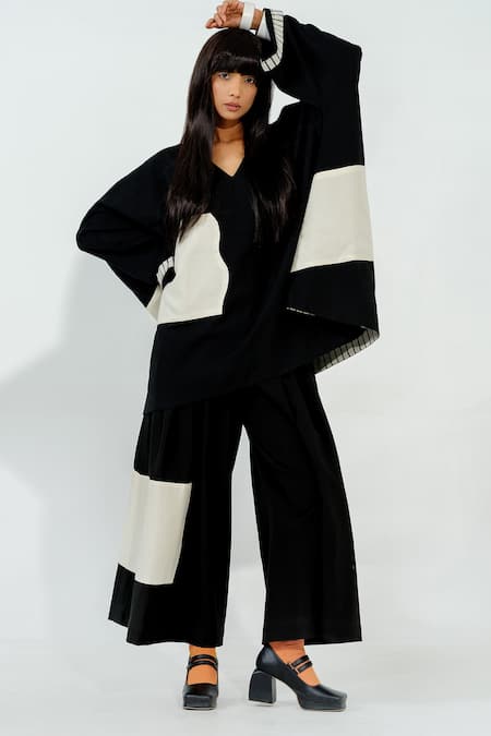 Black Cotton Matty Embroidery Geometric Manuka Placement Pant