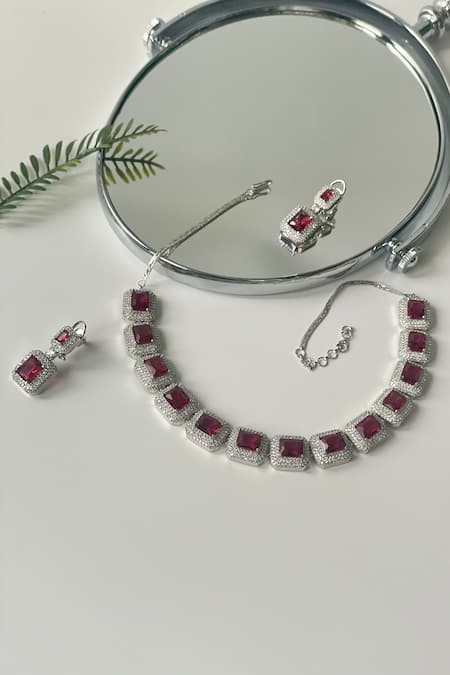 Pink Zari, Stones Geometric Embellished Necklace Set