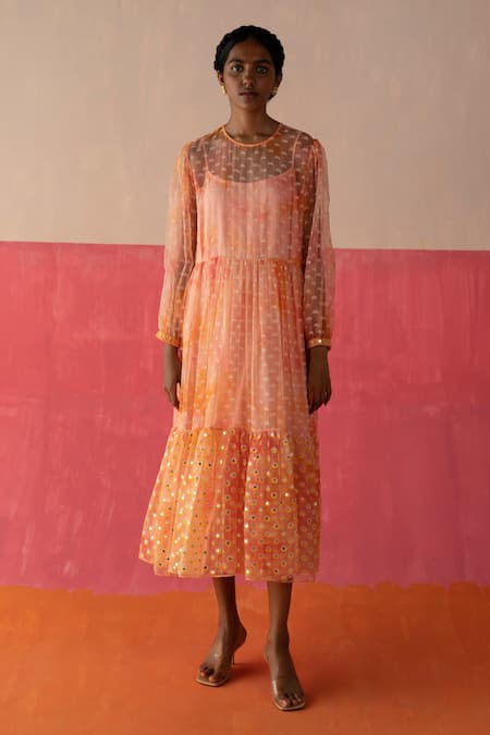 Pink Organza Printed Geometric Round Olivia Tie Dye Tunic
