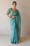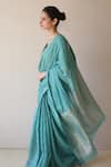 Teal Handloom Cotton Wildflower Meadow Jamdani Saree