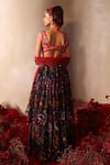 Blue Chiffon, Silk, Modal Mirrors, Beads, Sequins, Midnight Lehenga Set