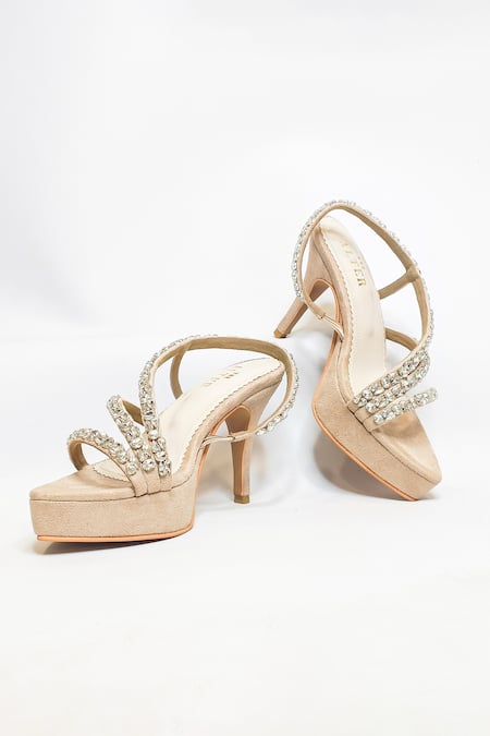Beige Rhinestones Kiara Embellished Platform Stilettos