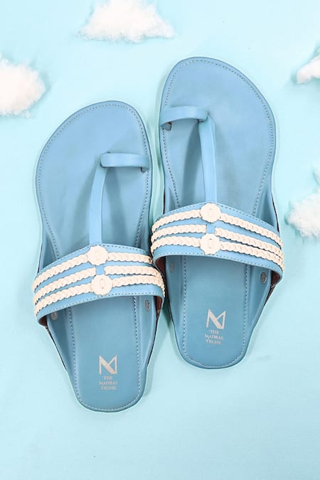 Blue Plain Haiku Ruhi Braided Pattern Kolhapuri Flats