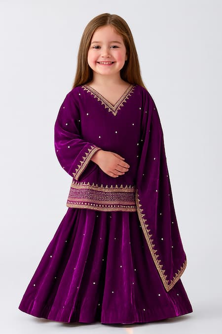 Purple Velvet Zari, Stones, Sequins, Embroidery Lehenga Set