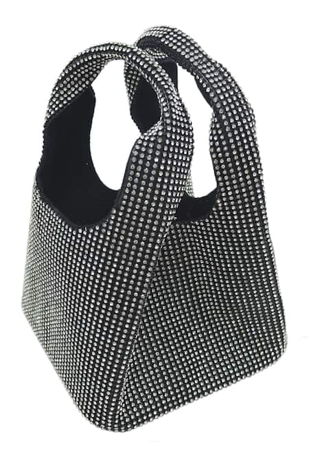 Silver Embellished Glitz Rectangle Shaped Bucket Bag