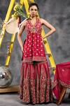 Red Organza Embroidery, Sequins Halter Neck Dabka Kurta Sharara Set