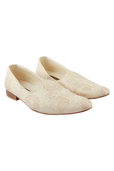 Beige Self Embroidered Juttis