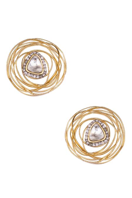 Gold Plated Diamonds, Stones Wired Stud Earrings