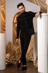 Black Cotton Embroidery Floral Bandhgala And Trouser Set