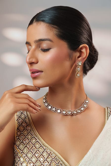 Gold Plated Stones, Crystals, Kundan Polki Necklace Set