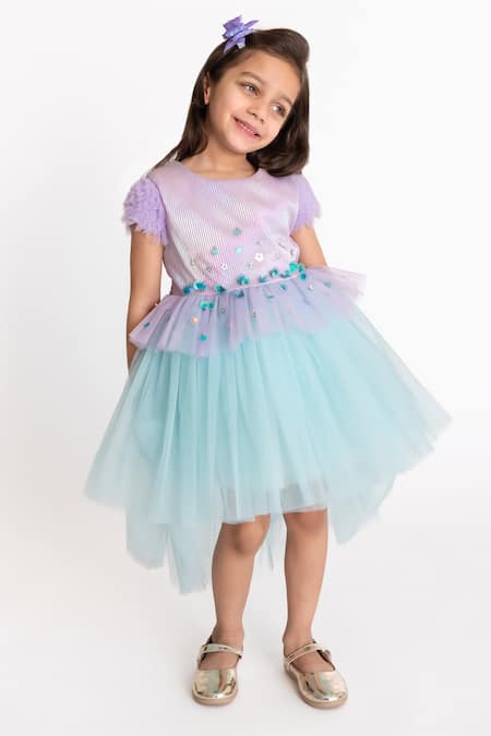 Purple Tulle, Polyester, Cotton Sequins Hand Embroidered Dress