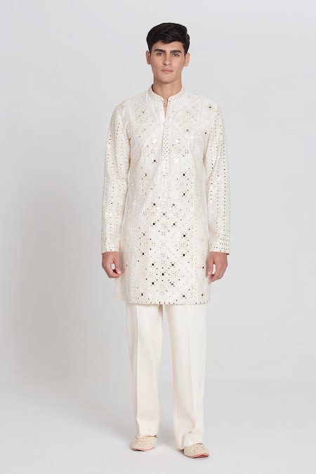 Ivory Chanderi Embroidery Heavy Kurta Pant Set