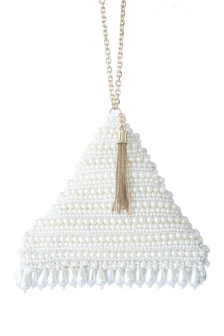 Beige Pearl And Bead Pyramid Wristlet Bag