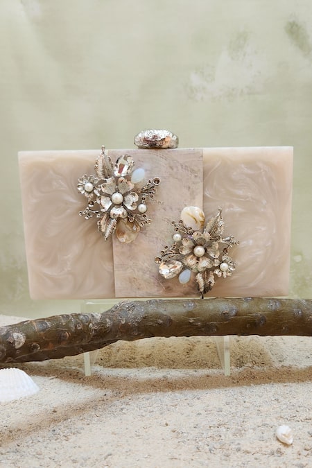 White Mother Of Pearl Rhea Embellished Clutch