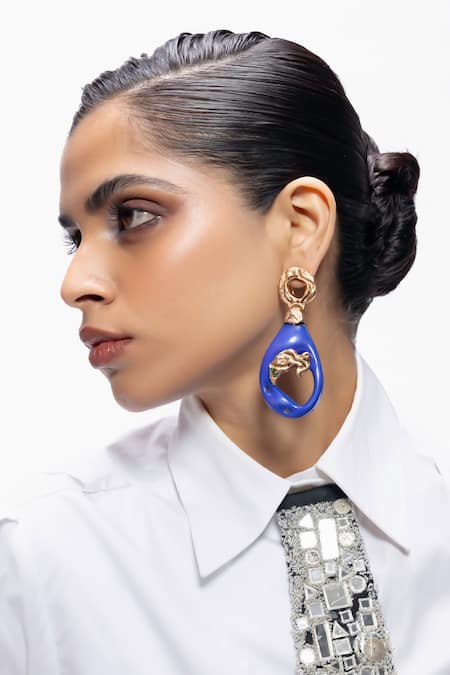 Blue Gilded Aura Waterfall Earrings