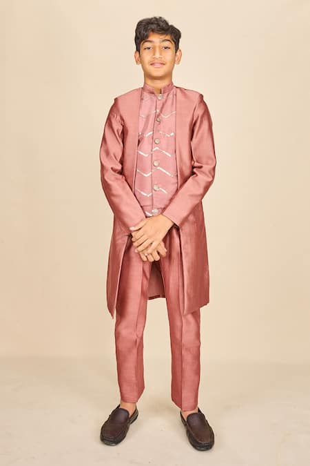 Pink Silk Sequins Rosewood Embroidered Achkan Set