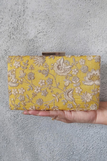 Yellow Embroidery Leya Flower Clutch With Sling