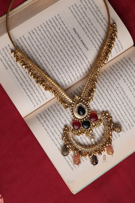 Buy_Anana_Multi Color Beads Gold Plated Pendant Necklace _at_Aza_Fashions