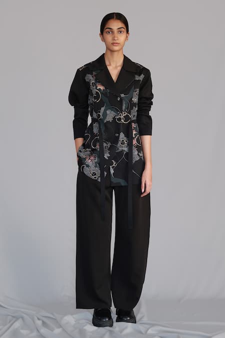 Black Crepe, Brocade Map Coat Set