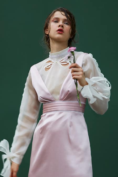 White Organza Round Cutout Top