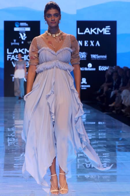 Purple Flat Chiffon Top Turtledress V-shaped Ruffled Dress With