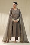 Brown Chanderi Silk, Cotton, Silk, Kota Doria Zari, Mocha Self Suit Set