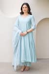 Blue Chanderi Embroidery Round Neck Powder Anarkali Set