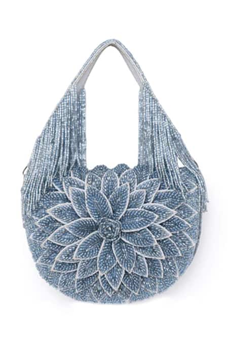 Blue Crystal Nano Embellished Clutch With Sling Chain