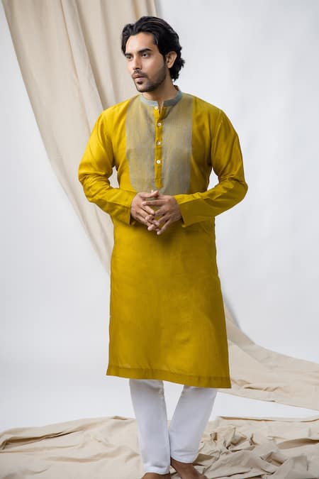 Yellow Cotton, Silk Embroidery Sujani Threadwork Placket Kurta
