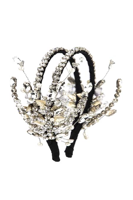 Silver Crystals, Pearls, Sequins Curlew Floral Embellished Hairband