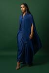 Blue Chiffon, Georgette Dhoti Set With Cape