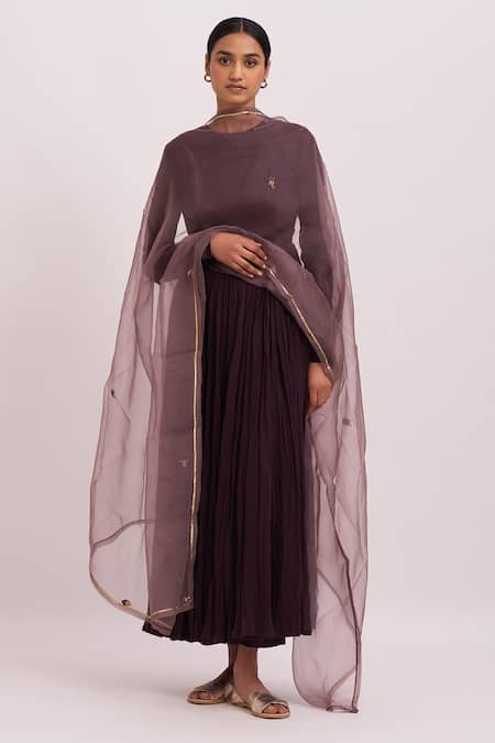 Purple Cotton Silk Zari Round Embroidered Anarkali Set