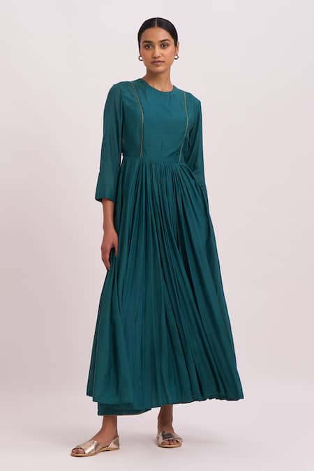 Blue Fine Silk Embroidered Kurta And Pant Set