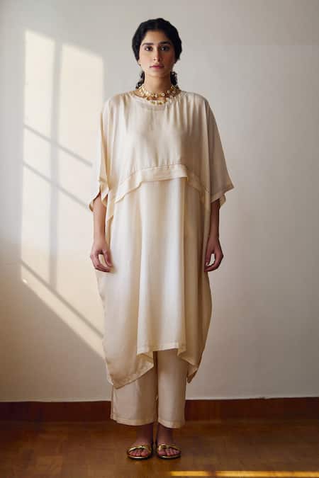 Ivory Cotton, Silk Round Neck Oleria Solid Kurta And Pant Set