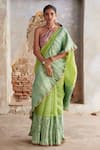 Green Tissue Halter Neck Lime Saree And Textured Blouse Set